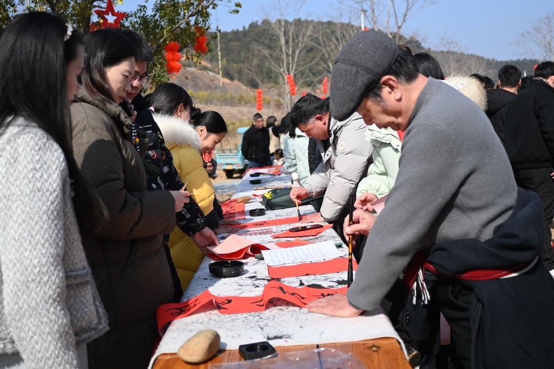 活动现场还设有书写春联区域,百余名书法志愿者挥毫泼墨,笔锋游走间,一幅幅寓意吉祥、满含祝福的春联便呈现在眼前。市民们兴致勃勃地围在桌前,精心挑选着自己喜欢的春联,为即将到来的春节增添了浓浓的喜庆氛围。舞台侧边,图书、文创商品展示区吸引了众多目光,这里展示着百余种朱子文化相关书籍、本地作家书籍以及60余种本地文创产品,独特的文化韵味让不少阅读爱好者停下脚步,细细品味。不远处,百余名返乡大学生围坐吃茶,围绕家乡改革发展各抒己见,积极建言献策,贡献着自己的青春智慧与力量。