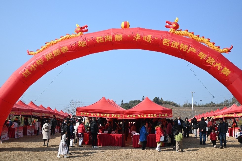 另一边的年货大集同样热闹非凡,现场人流如织,处处洋溢着浓浓的烟火气。在花海书吧广场设置年货展销区域,组织桔柚、淮山、大米、膨糕、荸荠、红糖等30余个建阳农特优年货摊位、10个建盏企业摊位,设置舞台推介、抵用券发放、抽奖等环节助力消费增长,为本地特色农产品搭建“出村进城”的产销桥梁,服务乡村全面振兴。