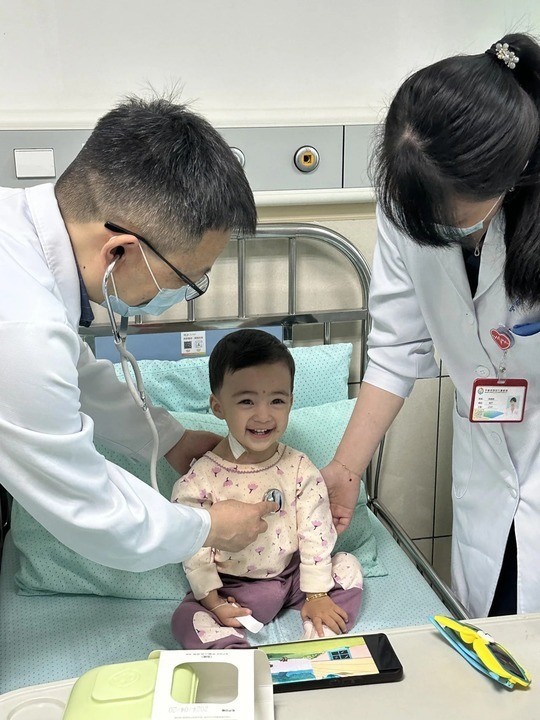 宁波援疆启动“心希望启航“工程,为小患者诊疗。(受访者供图)实施“百名柔性医疗专家援疆工程”、“心希望”启航行动、“手足畸形矫正活动”、建立南疆首个心脏病诊疗中心,救助心脏病患者70名、建立南疆首个手足显微外科诊疗中心,实施“手足”畸形矫正手术21例……